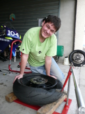 13h20 : Montage de balles enuves (toujours Pirelli Supercorsa SC1/SC2) pour moi et montage de pneus d'occasion pour Nico.